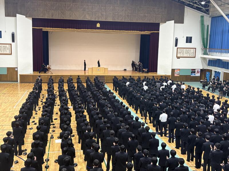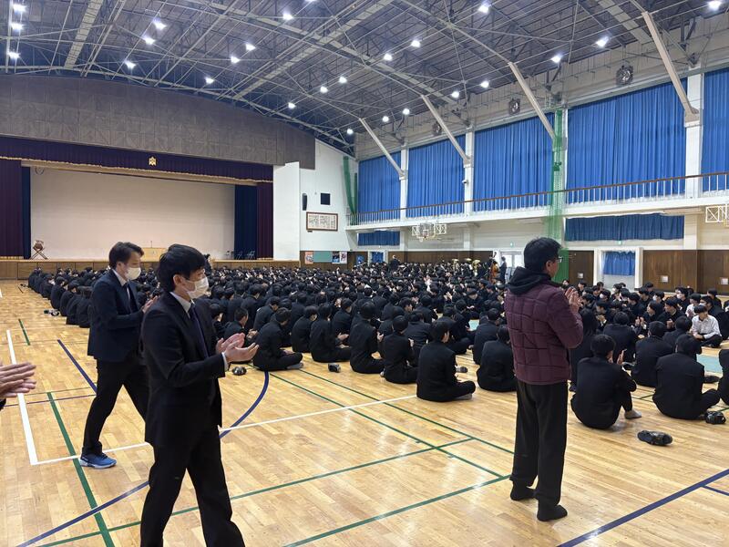 式の最後には、本校應援部が、離退任される先生方の今後のご健勝とご多幸を祈念し、力強いエールを送りました。全校生徒の拍手とともに、先生方を笑顔でお送りすることができました。
