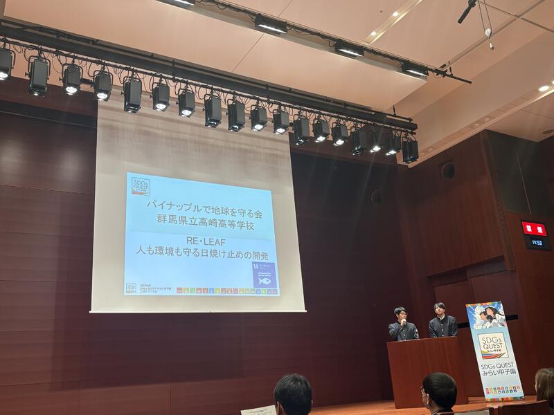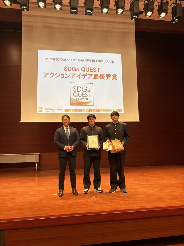 SDGs QUESTみらい甲子園上越エリア大会にて、本校の「パイナップルで地球を守る会」チーム(新3年田嶋くん・飯塚くん)が「SDGs QUEST アクションアイデア最優秀賞」(優勝に相当)を受賞しました!