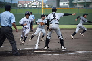 序盤から積極的な攻撃で得点を重ね、守備ではピンチを作りながらも2年生の小島・宮石が要所を最小失点に抑え、7−3で勝利しました。