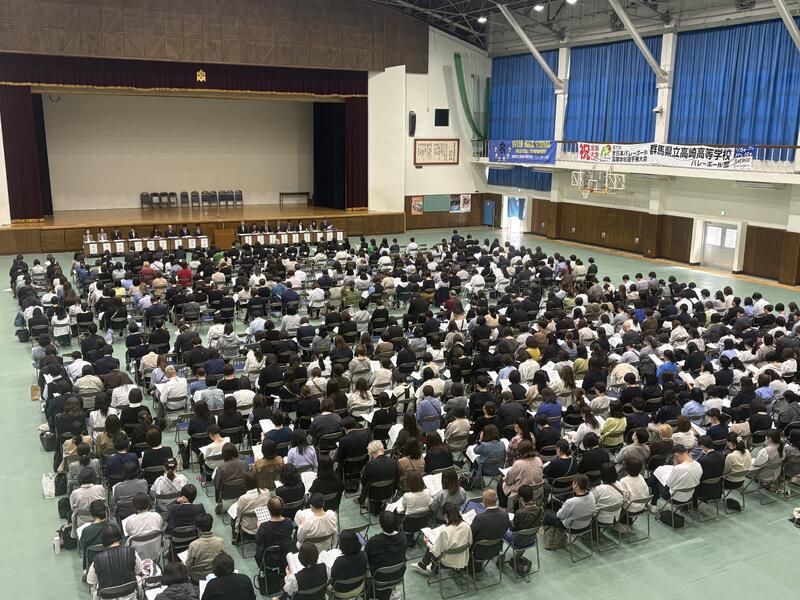 翠巒会館のホールには、今年も会場から溢れんばかりの生徒たちが集まりました。式では、まず実行委員長の3年・今野君が登壇。開催に向けた意気込みが語られ、会場は大きな拍手に包まれました。