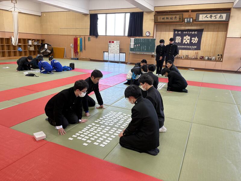 現在、校内では生徒会主催の「百人一首大会」が開催されています。 本校で長く受け継がれているこの行事は、生徒たちが日頃の学習の成果や自慢の瞬発力を競い合う、冬の風物詩となっています。