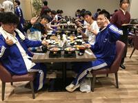 18時過ぎに初日のホテルであるグランヴィリオ宮島和蔵さんに到着しました。朝早くの集合だったので寝不足気味の生徒もいると思いますが、食欲旺盛で夕食時はお代わりをする生徒も大勢いました。