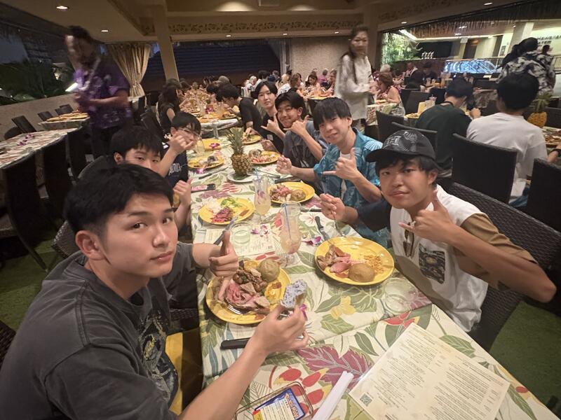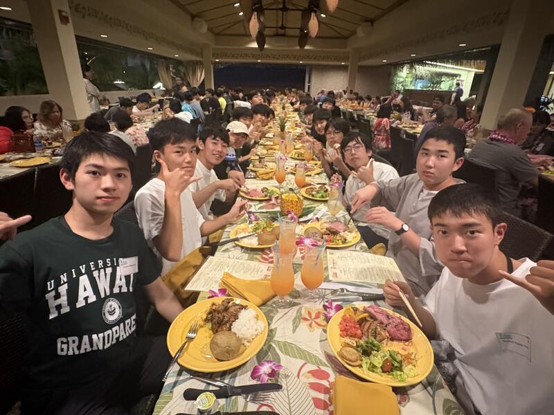 豪華なビュッフェを堪能した後は、ポリネシアンショーを鑑賞しました。ハワイの伝統舞踊に現代的な音楽を取り入れたステージで、特に迫力あるファイヤーダンスには、生徒たちからも大きな歓声が上がっていました。