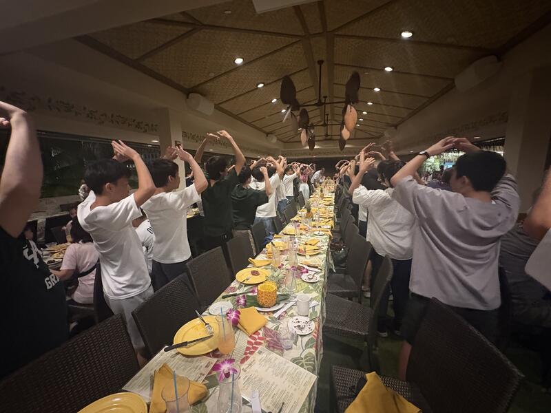 その後、マジックアイランドの美しいビーチを背景に記念撮影を行い、夕刻にはロイヤルハワイアンセンターにてハワイ最後の夕食を楽しみました。