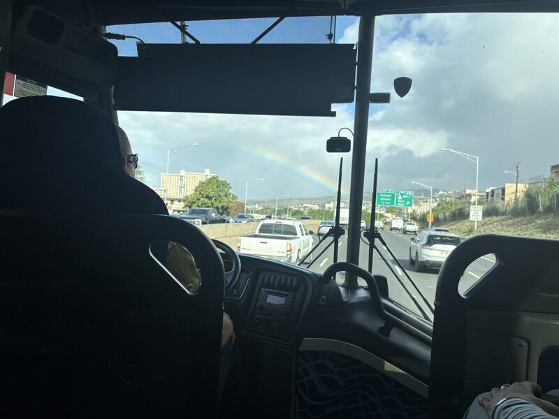 路線バスでワイキキから離れた博物館に向かった生徒たちもいました!
