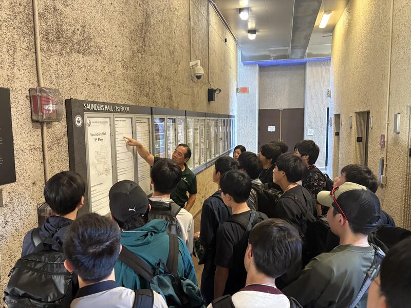 午前中は、経済学部の 樽井 礼 教授の研究室スタッフの皆様による大学説明とキャンパスツアーが行われました。生徒たちは、広大な敷地と世界各国から学生が集まる多文化な雰囲気に圧倒されつつも、日本とは異なるキャンパスライフに大きな刺激を受けた様子でした。