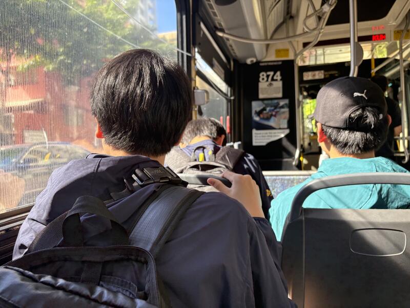 路線バスでワイキキから離れた博物館に向かった生徒たちもいました!