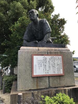 群馬とゆかりのある高山彦九郎の大きな像があると事前の結団式で話をしました。三条駅を出てすぐのところに大きな像があります。実際は土下座をしているわけではありませんが、地元では待ち合わせ場所として「土下座の前で」なんて言われているそうです。