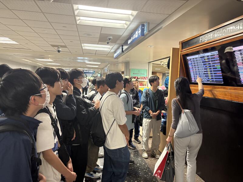 生徒たちは搭乗時刻表を確認し、搭乗ゲートまで各自集合というミッションが与えられました。搭乗までの時間で空港内の飲食店で英語の注文に挑戦している生徒もいます!さて、ちゃんと伝えられるか??