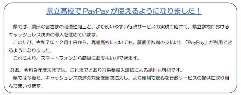 ※ なお、PayPayによるQRコード決済ができない場合は、従前の群馬県収入証紙による納入も可能ですので、