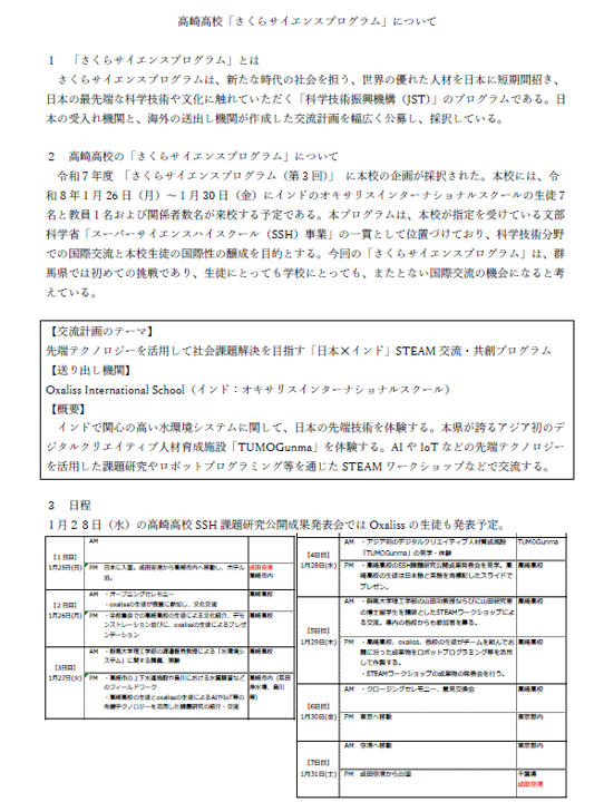 JST(国立研究開発法人 科学技術振興機構)が主催する令和7年度 「さくらサイエンスプログラム(第3回)」 に、本校の企画が採択されました。
