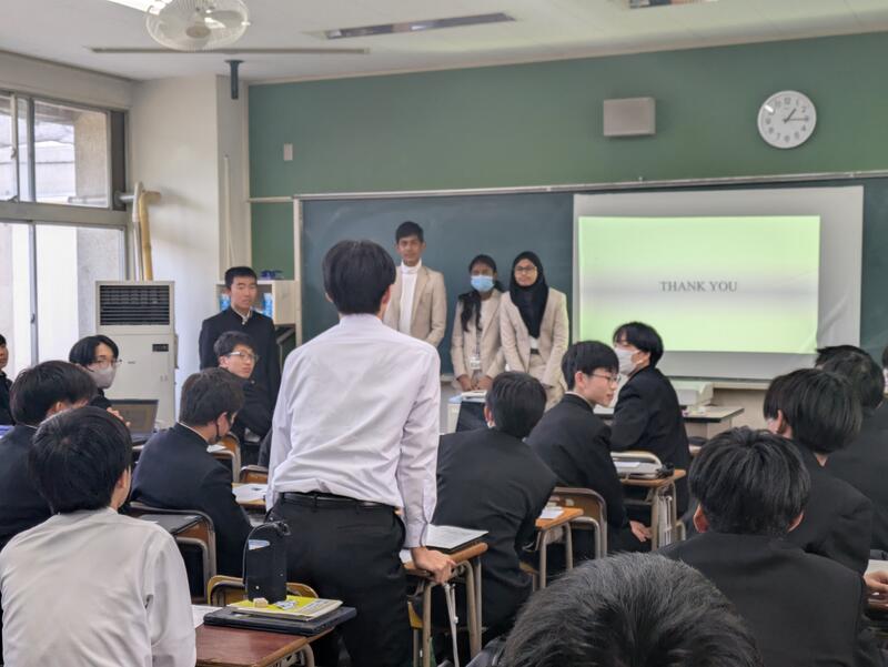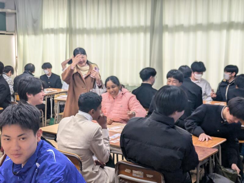 群馬大学の博士留学生によるワークショップ(1学年全員)
