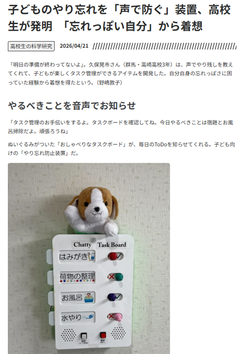 「おしゃべりなタスクボード – アナログ的な操作で子供の自己管理を補助できる、忘れ防止装置」